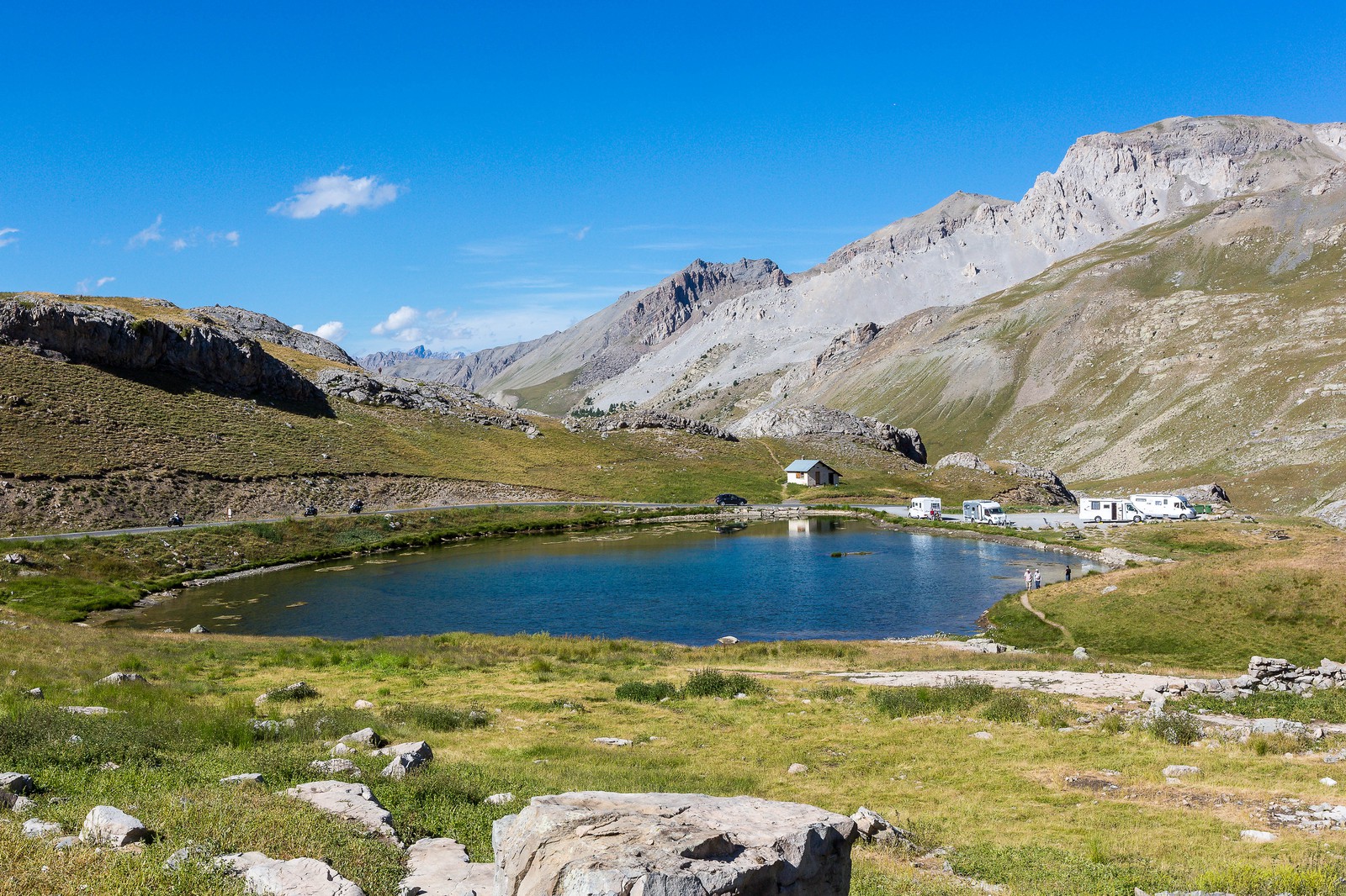 The Col de la Bonette culminates at 2715 meters (8910 ft) above sea level.. The summit is surrounded by the Route de la Bonette, which reaches an altitude of 2,802 meters. It is the highest tarmac road in France. This loop starts from the Col de la Bonette. In addition, you can climb even more but on foot: from the top of this road, a small.