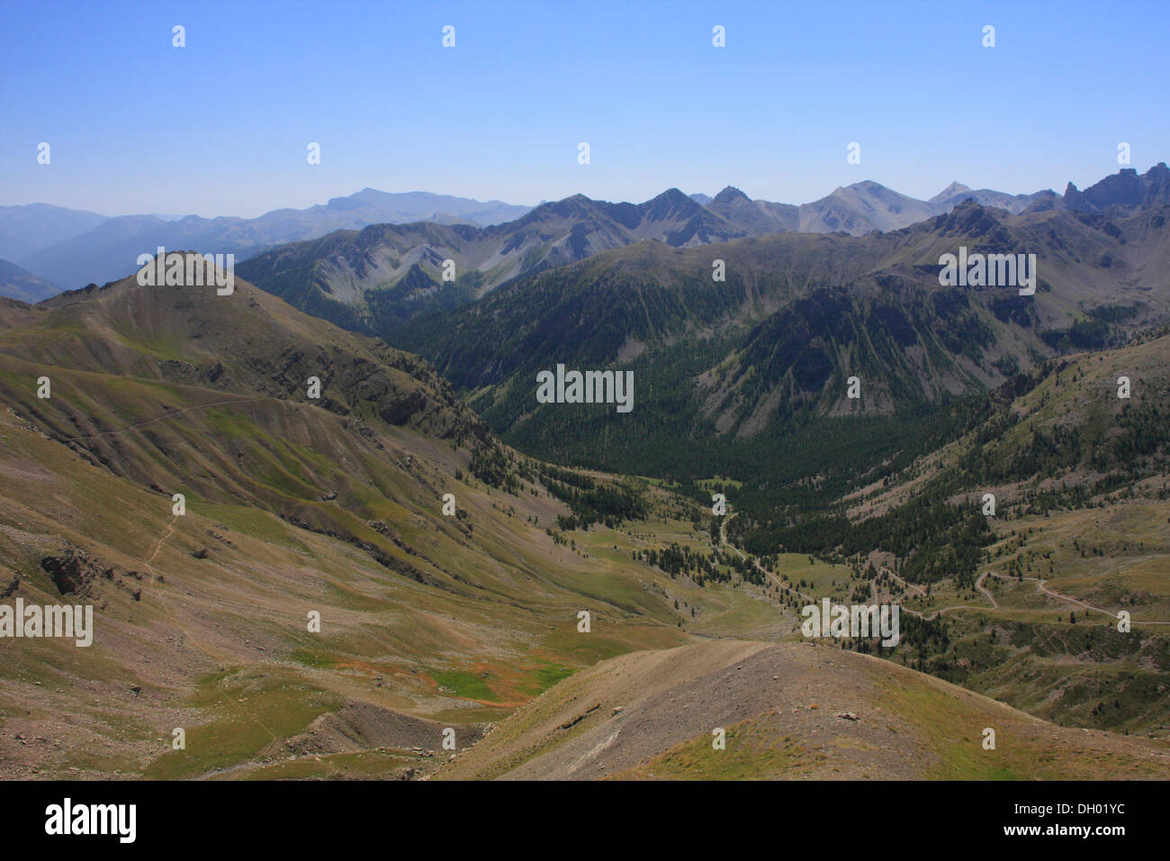 View from the Col de la mountain pass, highest paved road in Europe, AlpesMaritimes