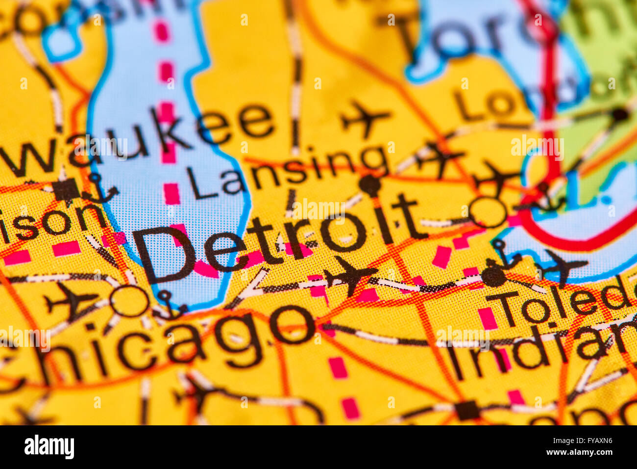 La ville de Detroit, aux EtatsUnis sur la carte du monde Photo Stock Alamy