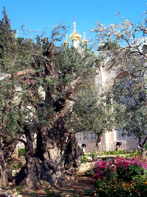 La passion du Christ s'est déroulée dans le jardin de la Gethsémani où se trouvent 8 oliviers. Les guides touristiques ont l'habitude de dire que ces arbres ont plus de 2.000 ans et que Jésus.