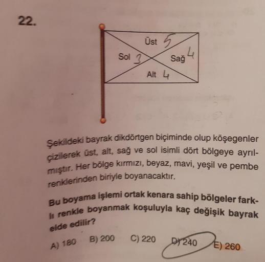 22. . Üst 5 Sol Sağ Alt 4 Şekildeki bayrak di... Lise Matematik